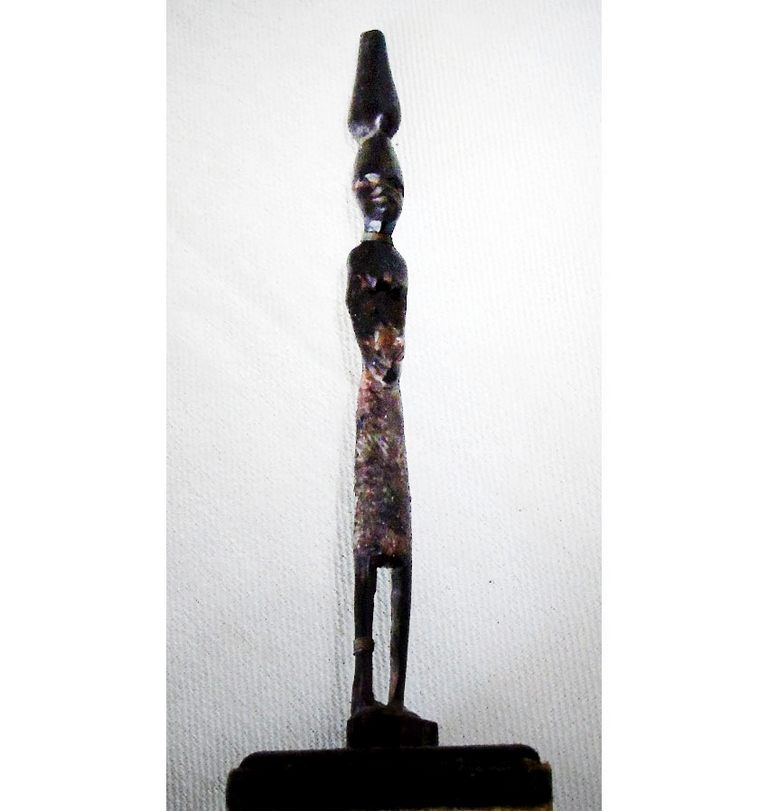 Esculpida de peça única de madeira com 27 cm de altura.